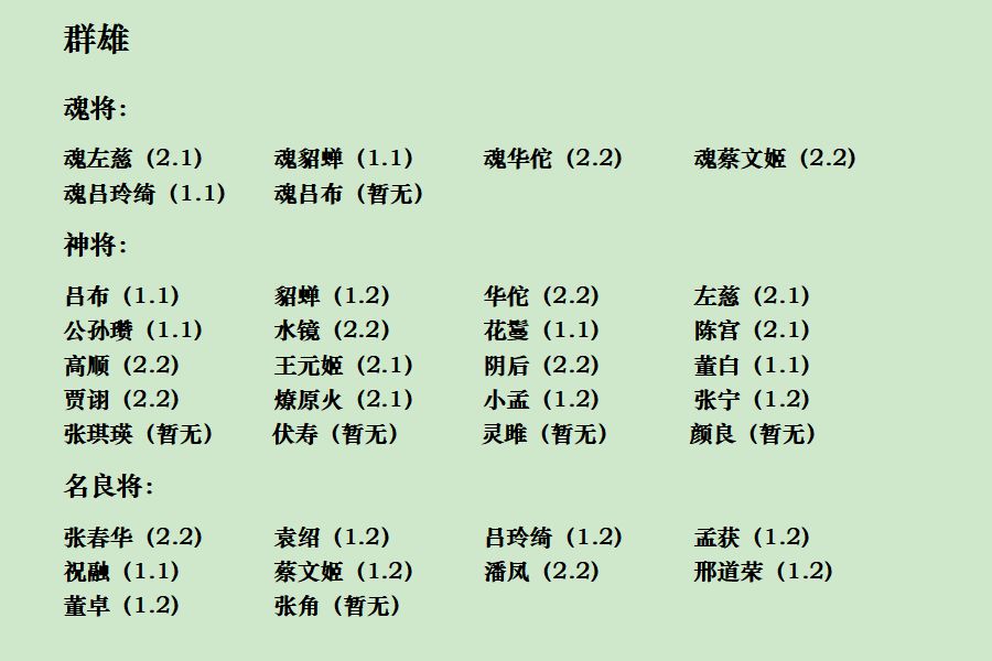 三国志幻想大陆全武将完美传记2025.7.19