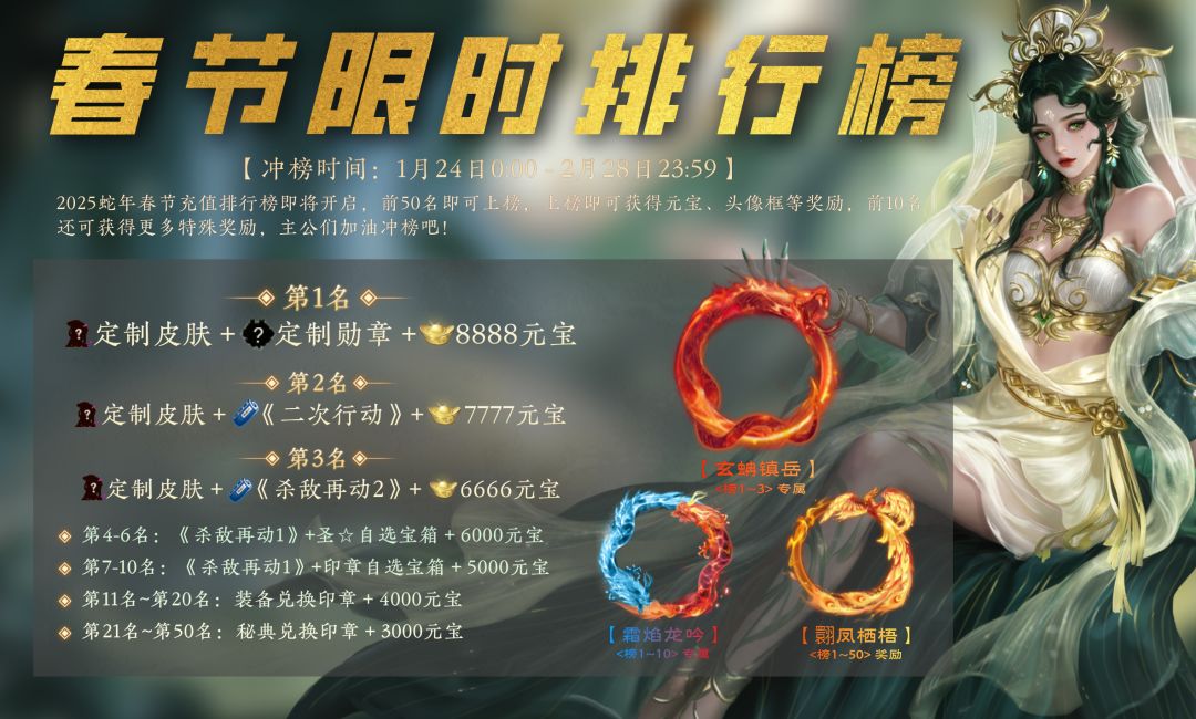 ■ 排行冲榜 - 春节充值排行榜开启,前三名得定制物品