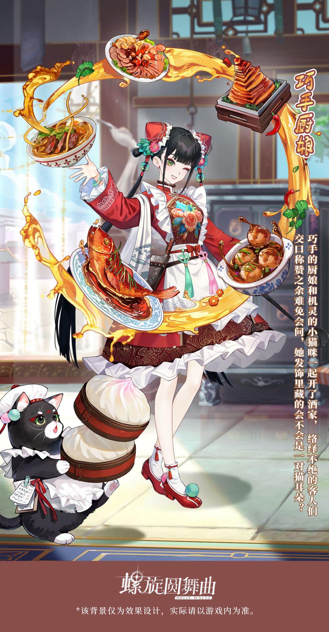 1月24日6:00-2月3日23:59,纪念币兑换通道开启!收集580纪念币可兑换专属套装「巧手厨娘」。