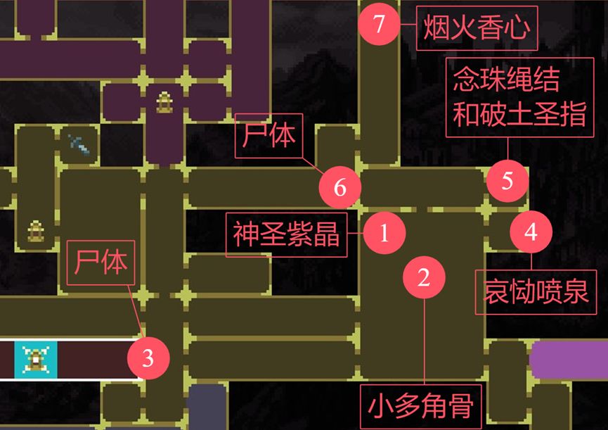 一路走到圣途最后一个房间。当时在这边砸开过一个地下隐藏区域,跳进隐藏区域里。