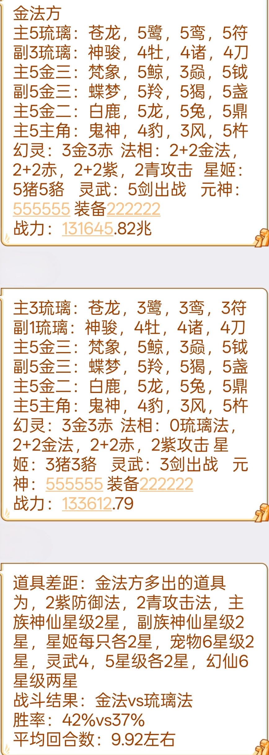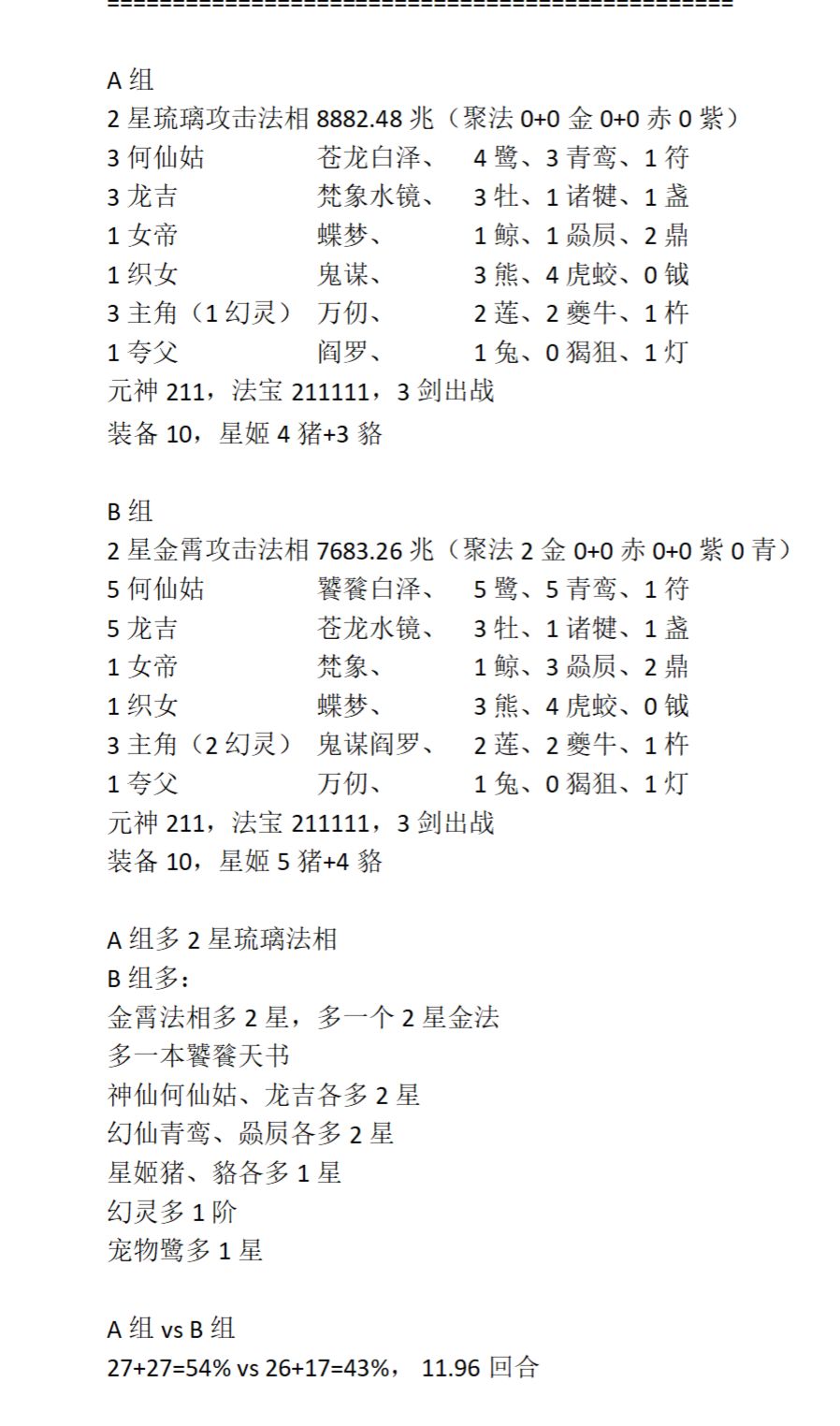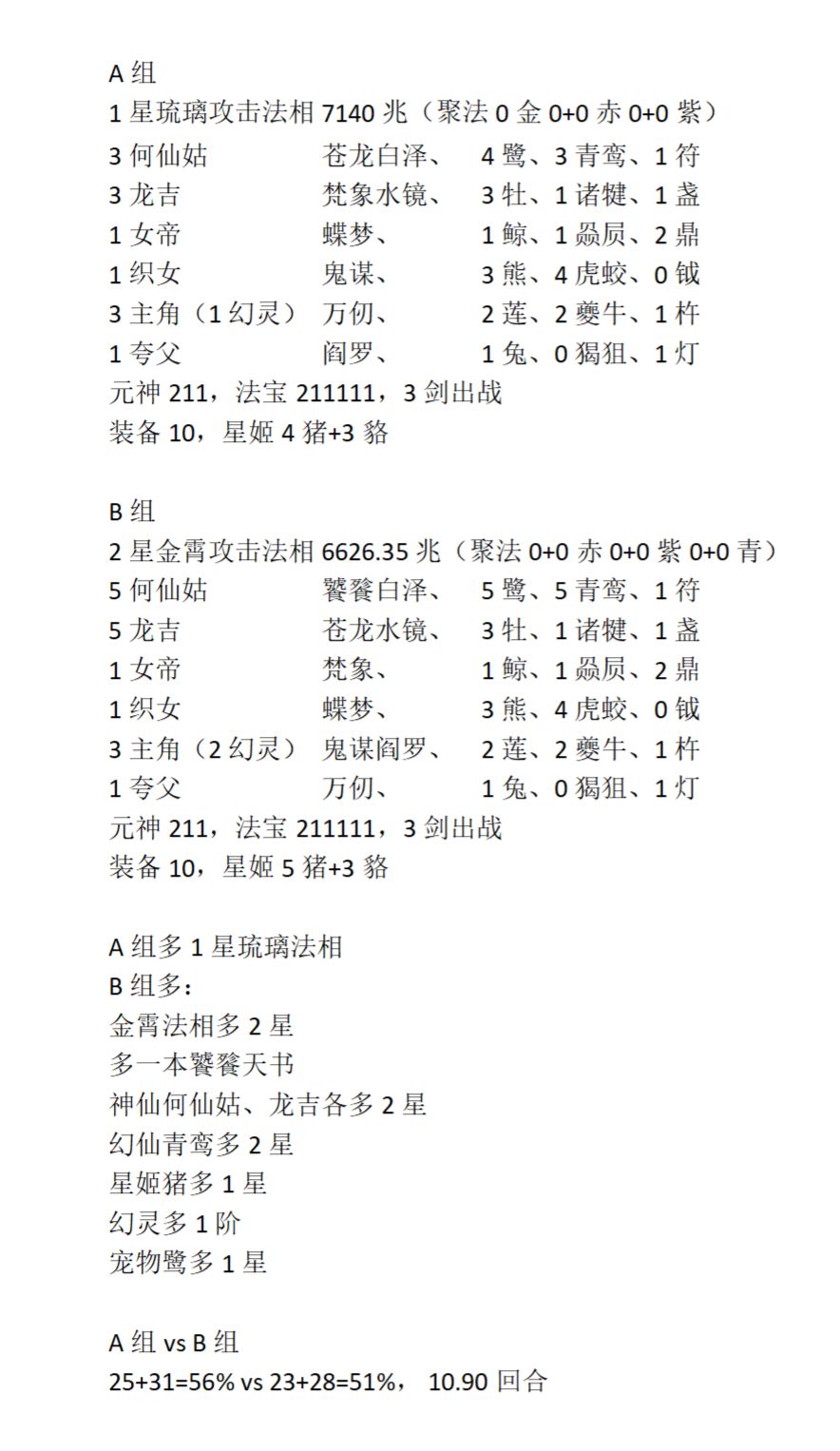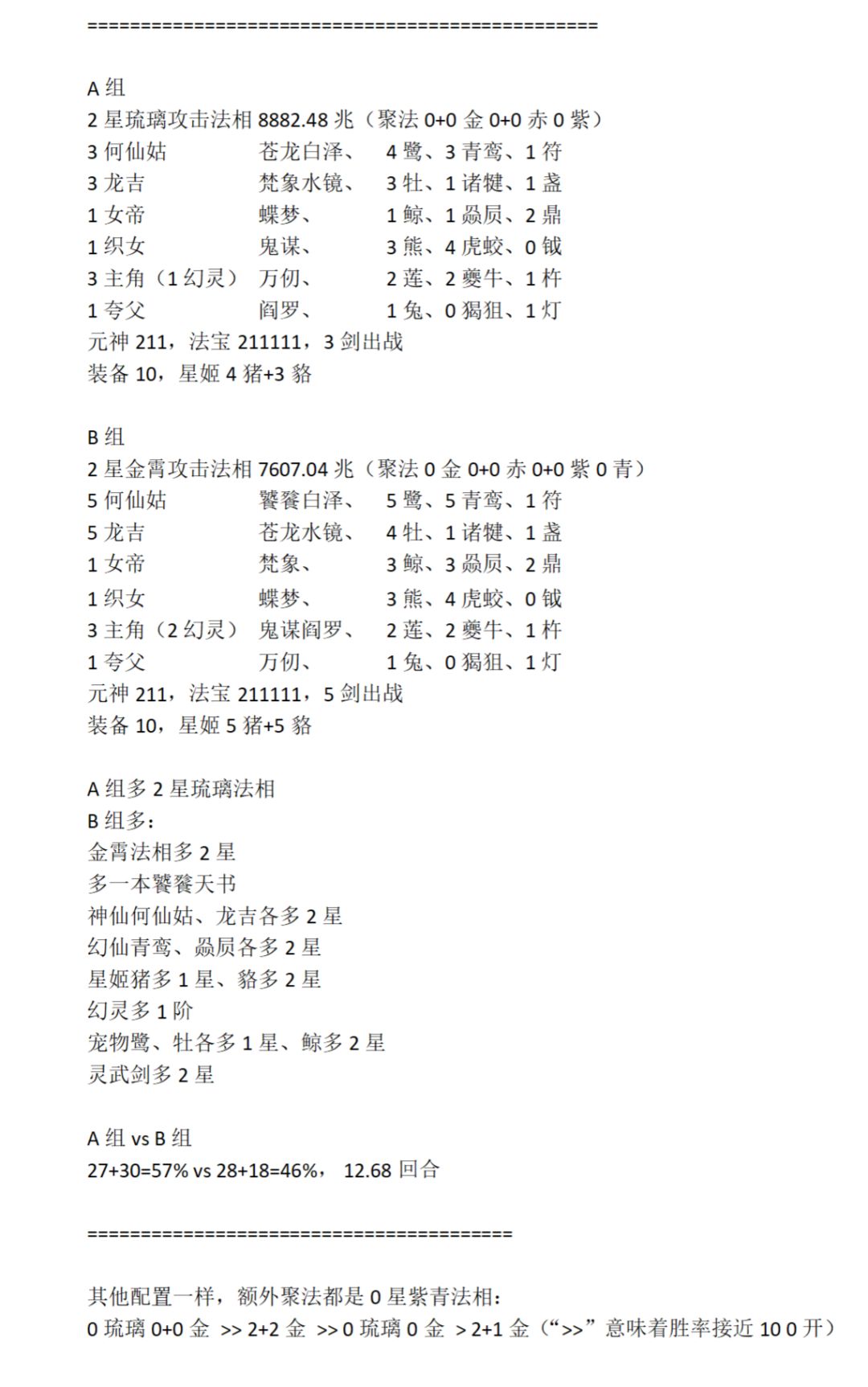 测试是两个原本一模一样的号加配置后再打,这种情况每种属性作用能最大化发挥,对法相有利。