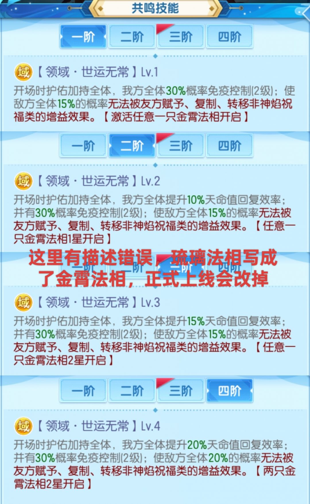3.多了天命值回复效率,天命值是琉璃神仙释放天命技所需要消耗的东西。