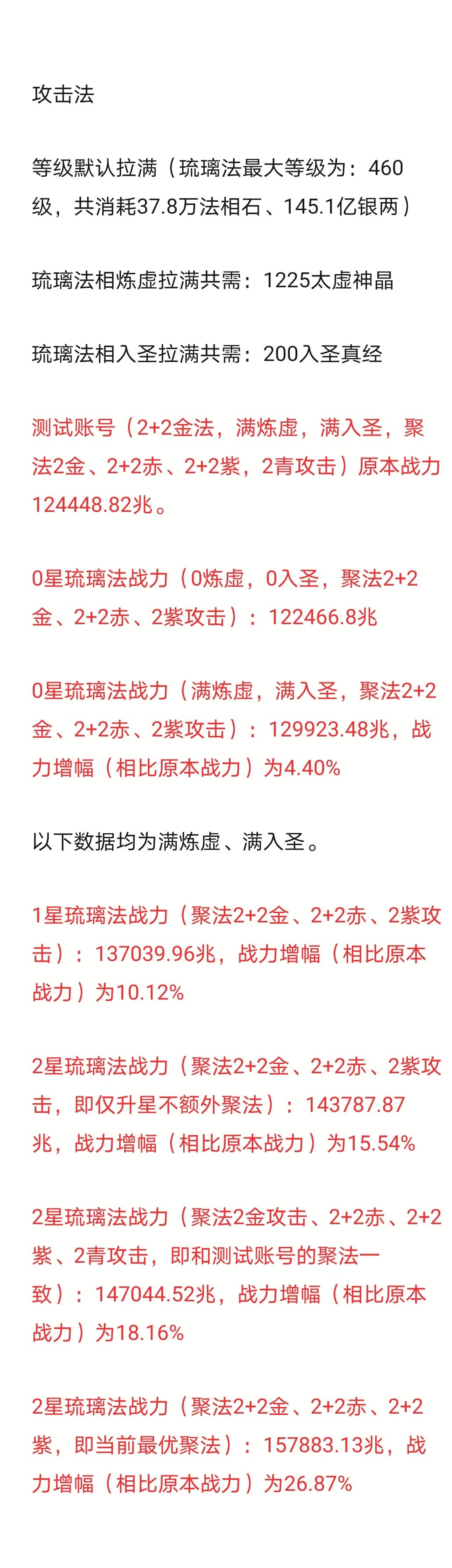 注2:聚法中的法相优先开图鉴,并且平均升星(求你们别看错了,每年一堆看得到注2,看不到注1的,先把附体、聚法分清楚),法相0+0的属性比单2高,并且花费更少。