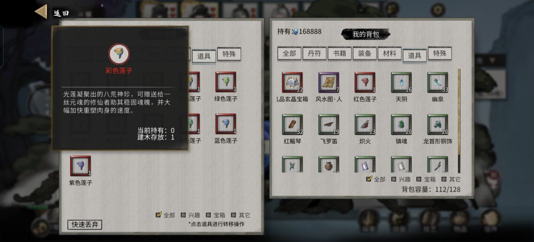 鬼谷八荒 彩色莲子获取