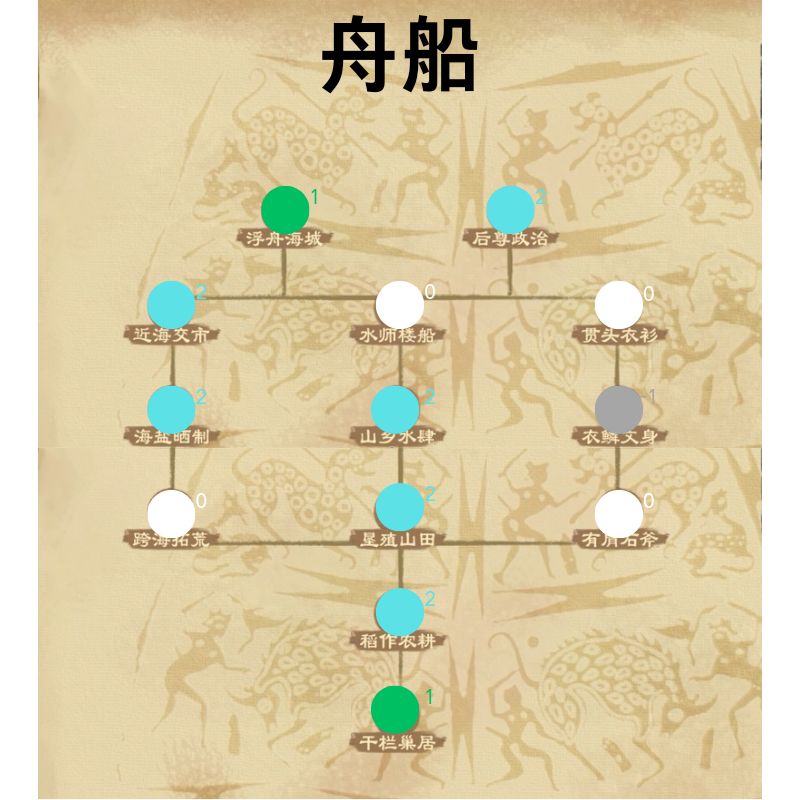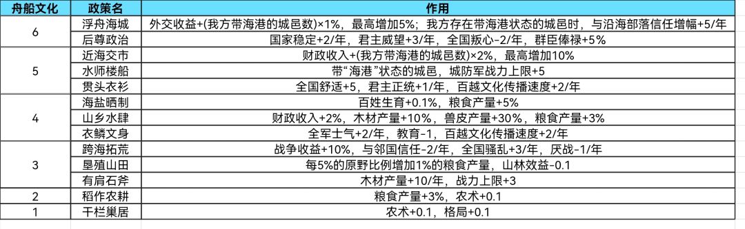 有不错的粮产政策,同时涉及国家、城邑特性以及少量资源武器类加成政策,整体舟船流派强度中规中矩。