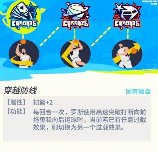 罗斯运球试探对手,如果干扰区有人,风城玫瑰·罗斯将进入冲击过载状态,此时运球移速提升、扣篮命中率增加,多种突破攻框技能也会获得升级效果。