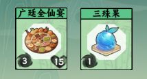 5、【佳肴】:就是粮食卡片,前文有说过,不同的粮食卡片能提供的粮食点不一样,具体数值可以看卡片上的数值;