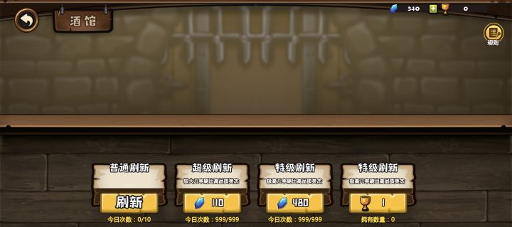 酒馆是招募英杰的核心场所,通过不同等级的刷新机制获取角色,具体规则如下: 1. 刷新类型与概率
