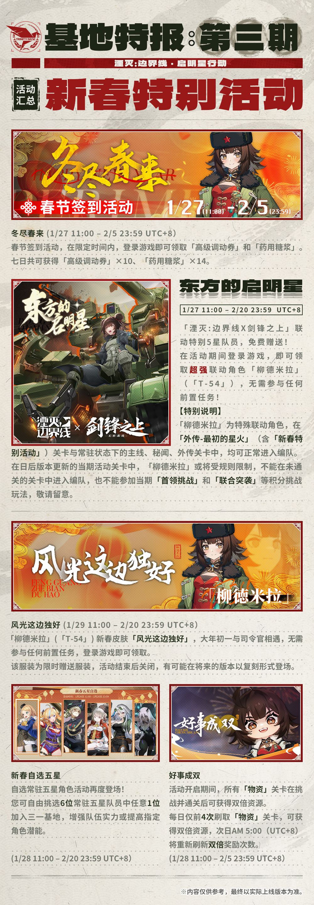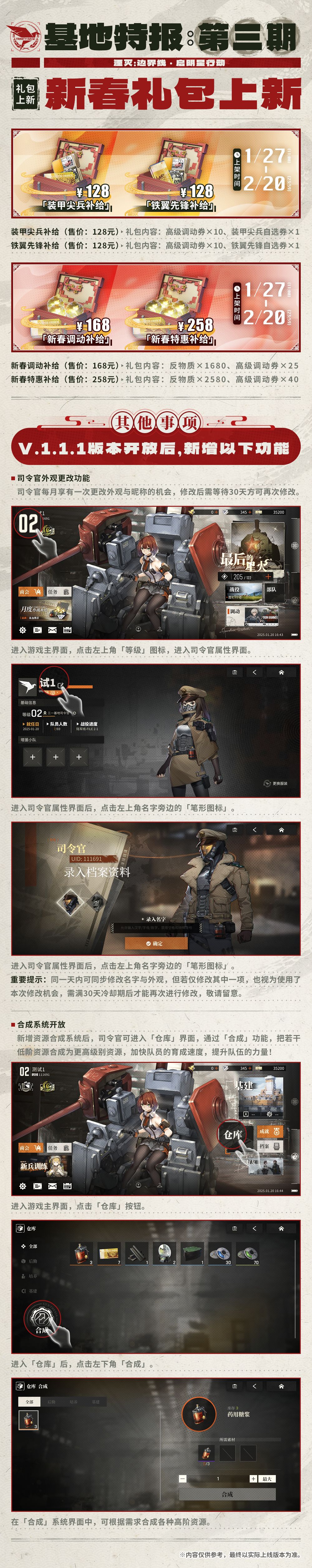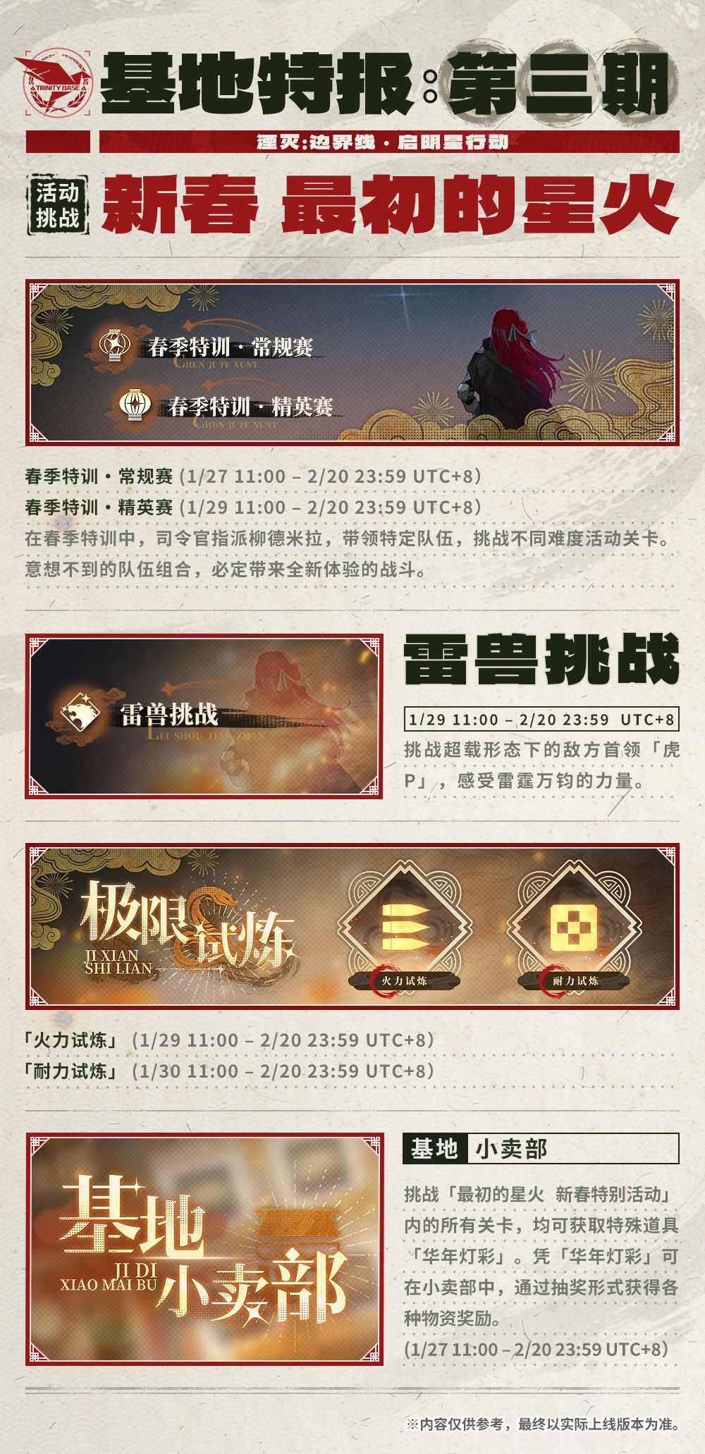 )进行停机维护,并于11点开放V.1.1.1版本「最初的星火·新春特别活动」,以下是具体内容: