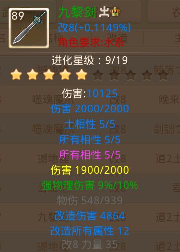 如下图:标准的老区力水武器,建议做双所有相5+土相5+双伤害,不要必杀也不要技能,卡89级,带2个技能首饰就可以力破4,这种力水伤害极高。