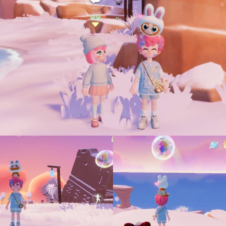 彩虹花束:一朵在家里、一朵在喷泉口附近、一朵在石柱附近上面。