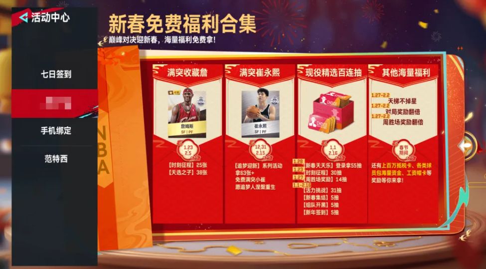 荣耀时刻詹姆斯、天选之子副本PVE新春天天乐、新春红包天梯不掉星、时刻征程等超多活动即将上线更有最新街头新春球场陪各位过大年