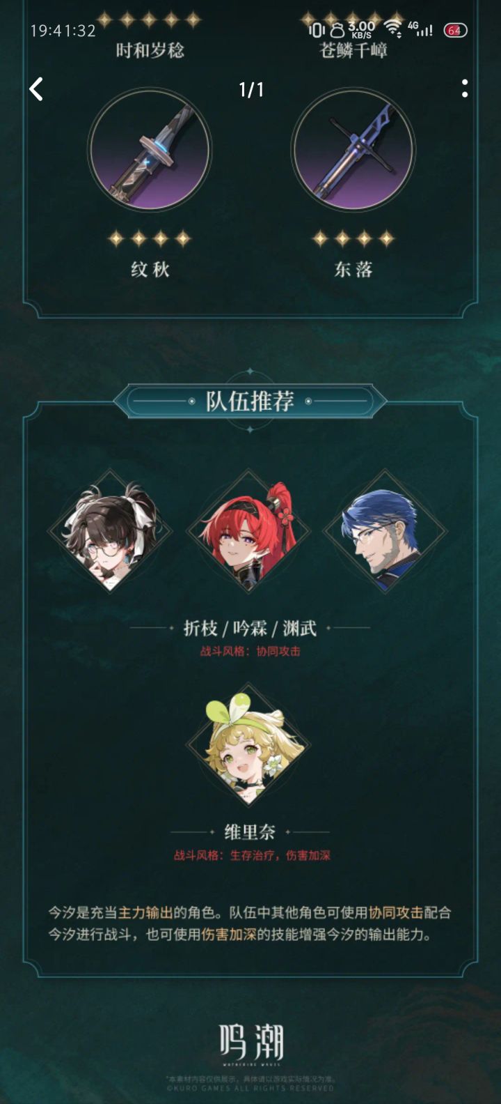 今汐的最佳队友都是别人的,吟霖相里要的,折枝柯莱塔的。就渊武对汐汐不离不弃,可他却是一个四星男角色。