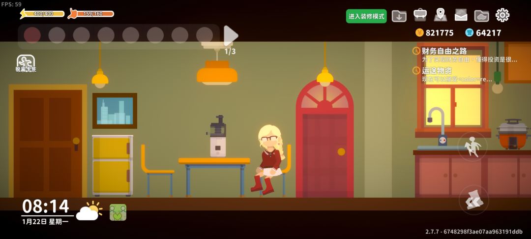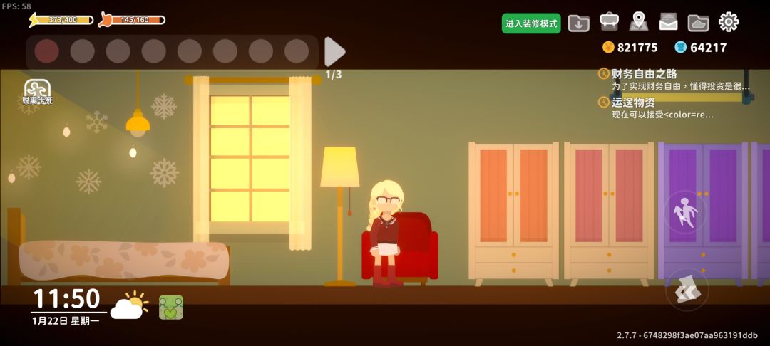 1. 进门落地灯放箱子用,装斧头、铁锹、镰刀、老虎头套、300个茄子种子和高级生长激素,放箱子避免背包满时进房间切换场景。