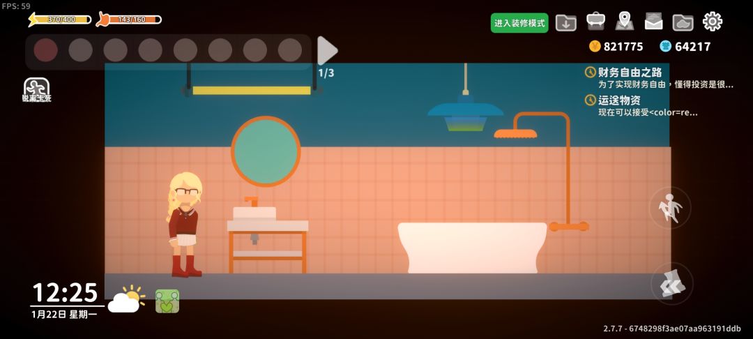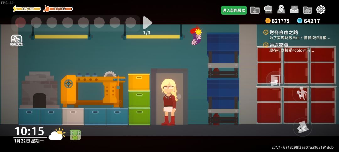 (重点说下白箱❗❗❗下海回来,站在白箱子位置,工作台、石炉、四个蓝箱子都可点击到。主打方便,避免各种文字提示而点错箱子。)