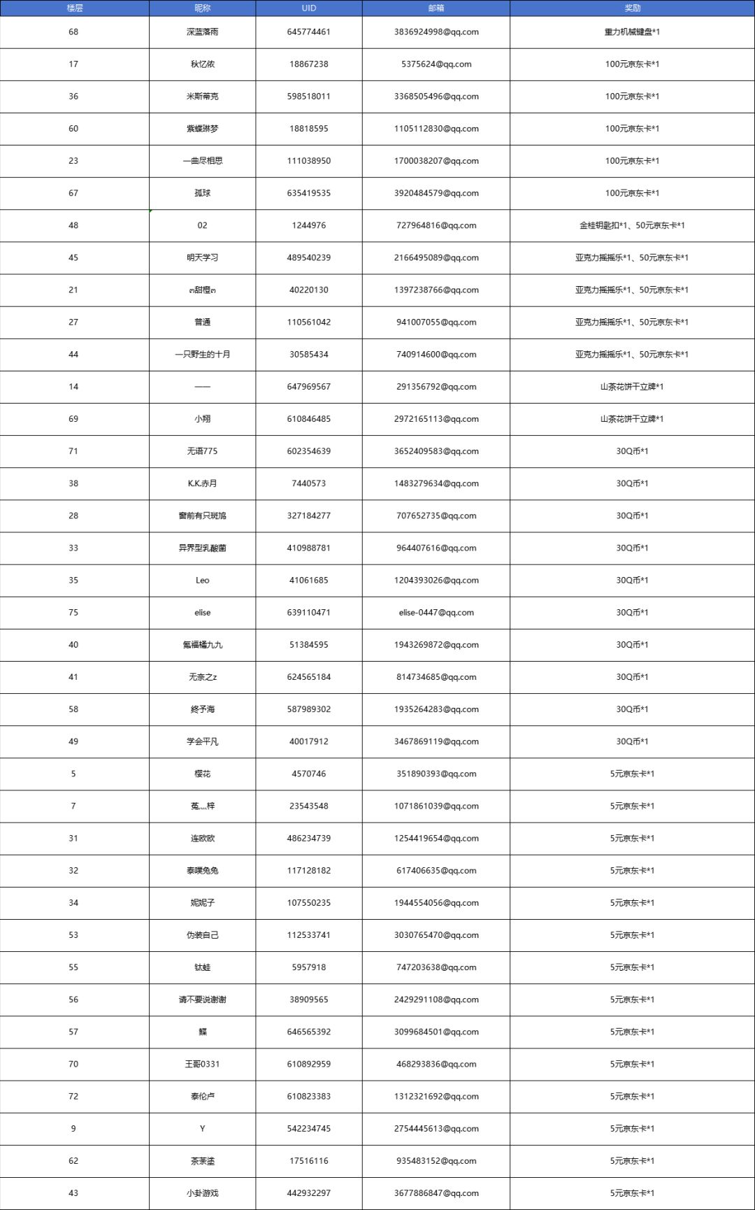 6.活动结束后15个工作日内将会公布获奖名单,请到本帖查看开奖公告。获奖名单公示后,请获奖玩家于公示期提供相关获奖信息,逾期视为放弃奖励!