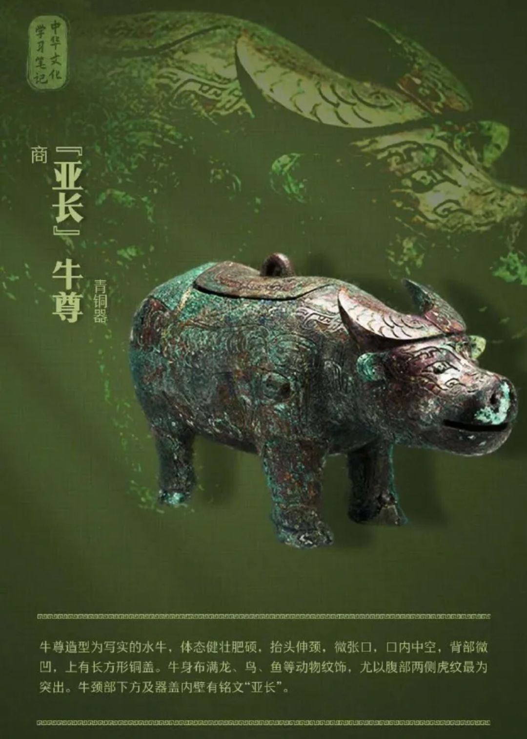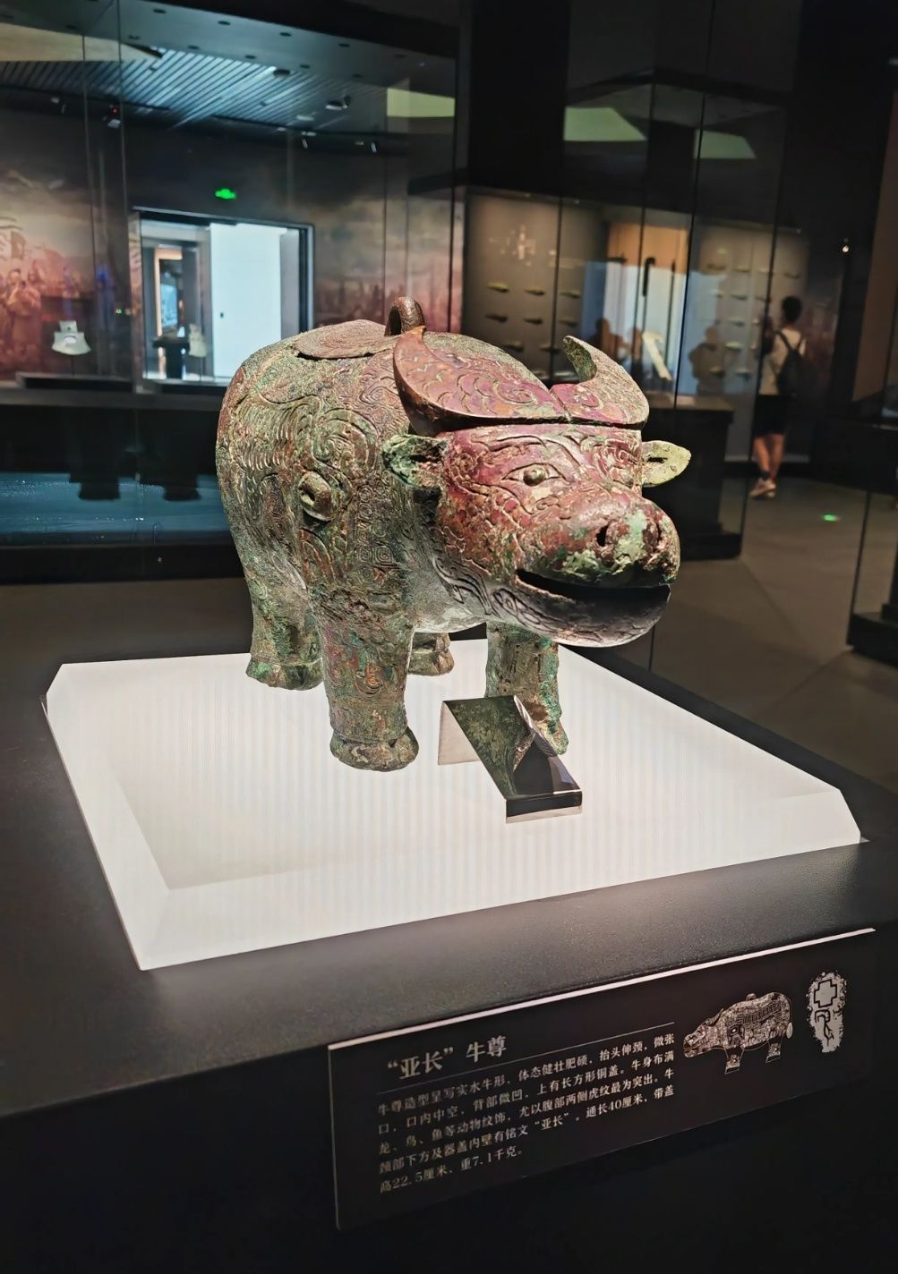 #物华弥新创作者激励计划 #亚长牛尊 #物华弥新 背景:亚长牛尊是商代晚期的一件珍贵青铜器,2001年出土于河南省安阳市殷墟花园庄东地M54墓葬,它不仅是商代“长”姓家族的庄重礼器,更是迄今为止殷墟发现的唯一一件牛形青铜尊。