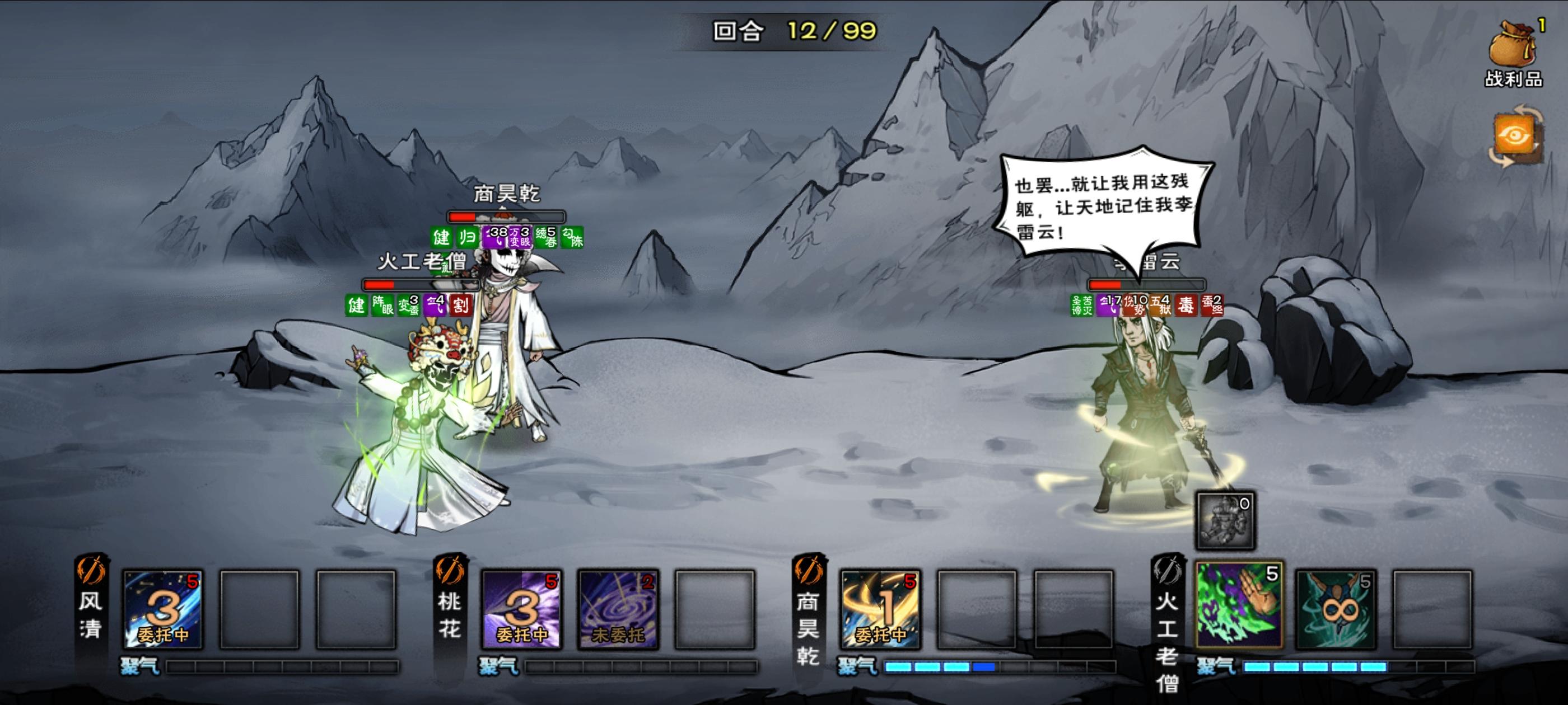 李雷云“抬手吸蓝时点技能”这个技巧确实好用,能几回合就把他打倒地,但还要等他强行站到伤势10自爆,如果怕回合不够可以在李雷云这快点,建议5回合杀,只要等到12回合就结束了
