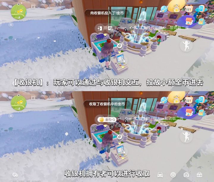 玩家可以通过与收银机交互,投放小额金币进去,每次只能投入1个金币。
