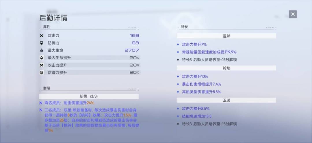 如图,小毕业后勤0+1都有五千五的攻击力,这要是满天启不得上六千攻击,不愧是拉弓的,力量就是大。后勤词条首选攻击,其次爆伤或同调,刷到10%攻击就能停手了,后勤优化的还是挺不错的
