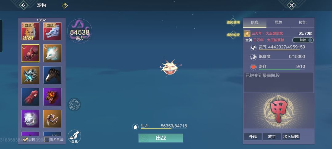 第三次回游买的账号,22年六月,北山已经出了,小氪几波,拿下了第一个鸿蒙装备,好像是8q-1w的样子。当时在榜一氏族,每天三只魂兽都是我们氏族包的,运气好能捡到好几个神识。回游的时候看视频有只宠物非常吊,大王酸浆鱿,当时为了这只宠物非常疯狂,200勾收位置,抓了七个临时,一套印也好几千够,当时还创下了整个游戏的记录——单刷大王酸浆鱿,b站视频还在发16人高战队伍被团灭,本人已经单刷完了![[表情_斜眼笑]](https://img-tc.tapimg.com/market/images/d1b1dcc88719f6c9a639728cde152c4b.png)