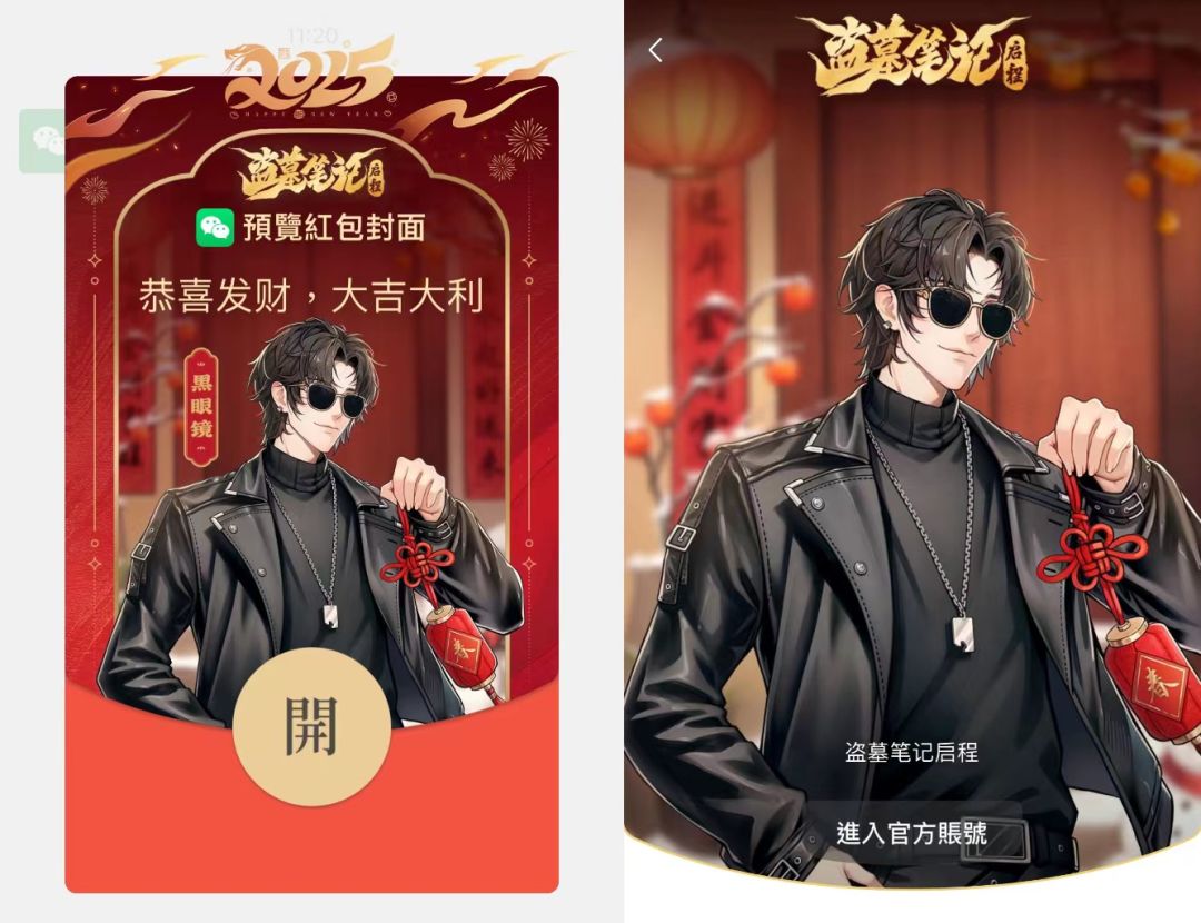 即日起至1月24日,预约【盗墓笔记启程】并在本帖下方留下你的新春祝福,随机抽取20名九门后人送出新春红包封面(黑瞎子款)!
