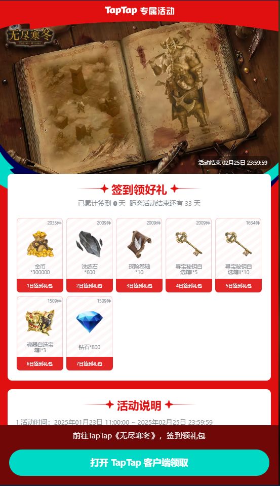 点击链接,即可跳转2月签到页面~https://www.taptap.cn/events/game-sign/pbrgryx4