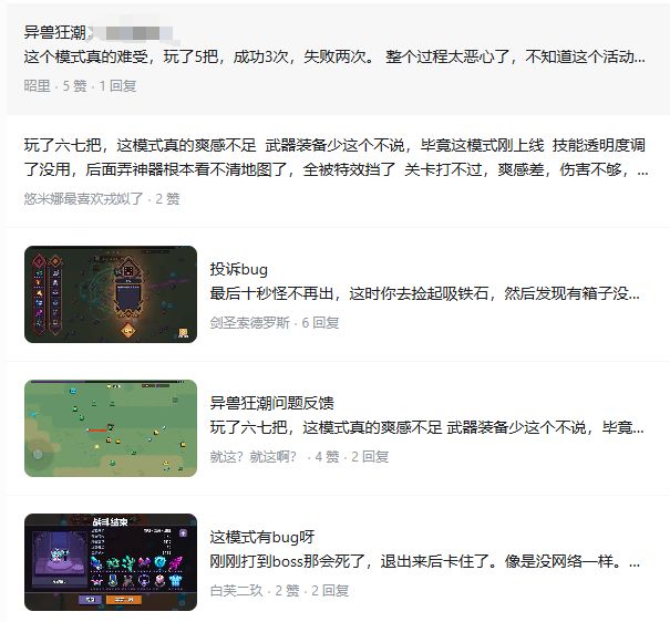 新玩法异兽狂潮上线后,大家关于异兽狂潮的反馈铁匠已经收集整理并和策划们讨论过了。