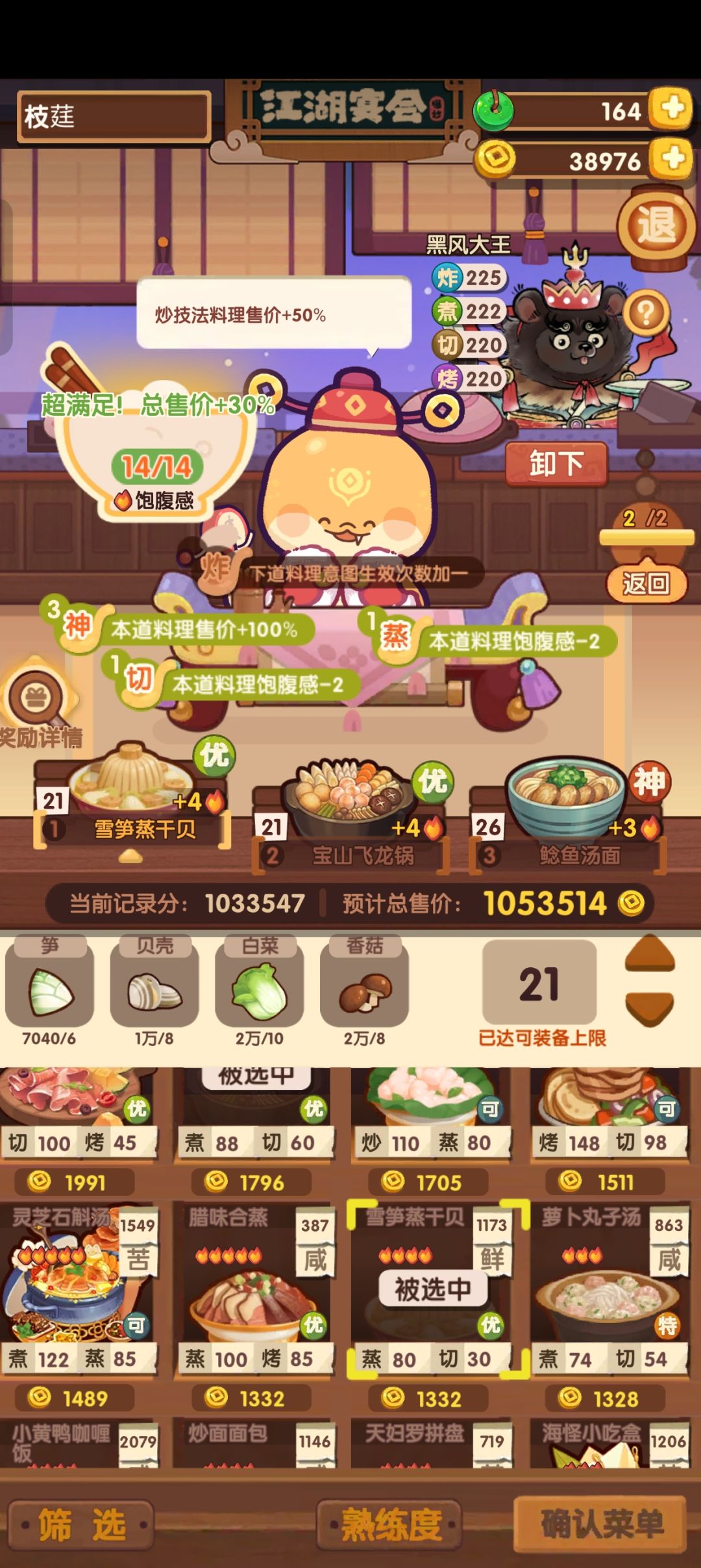 3.无聊又试了一下一种不用雪糕刺客的方法,但我的菜里是需要雪笋蒸干贝的,毕竟只抽满了两三个池……你可以看看自己的菜有没有什么可以替换的