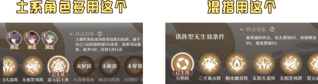 可以带混元后土阵,带三土阵型,再加个奶妈,最后加一个辅助角色,给土队提供一点额外的帮助,如果是混搭的就用万物阵。