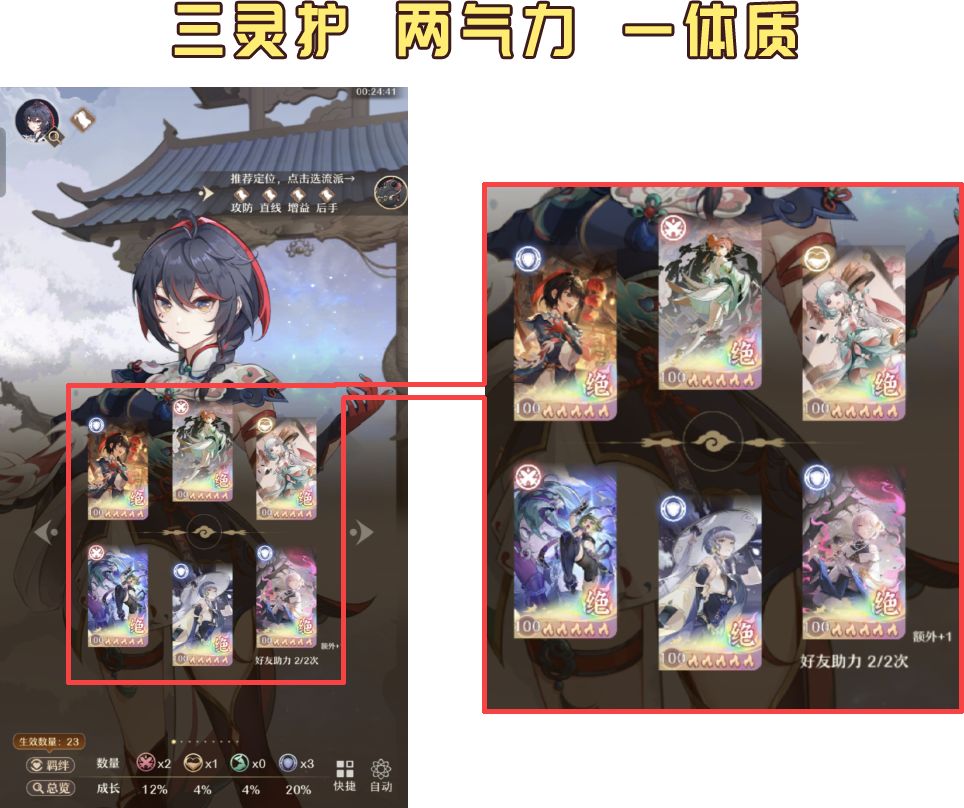 于世的专属执念卡为灵护方向,固有效果可以提供很多的灵护,最好是修炼的时候带上,没有的用湘湘的朔夜永别,或者白緲的幽城倩影用用,再没有的,就用南宫璃的研读,或者李存兮的视察学宫,以及于世的燕子易数。
