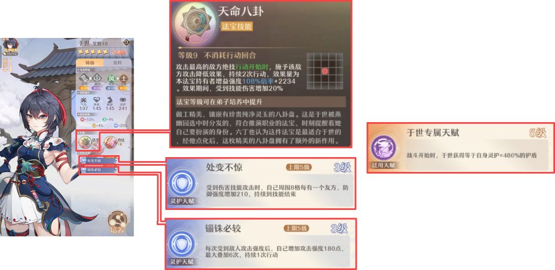 同时于世还有个专属天赋,能在战斗开始的时候获得灵护护盾,注定了这是一个能抗能打的角色。
