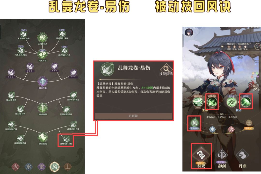 至于另外的风系的话,可以走主修气力辅修灵护的风符叠盾分伤流,技能推荐乱舞龙卷-易伤,被动选回风诀,也算是能把于世的承伤能力发挥出来。执念卡就用两气力,两灵护,一敏捷,一体质,不过风系不是很推荐就对了,适合想玩点其他套路的用。