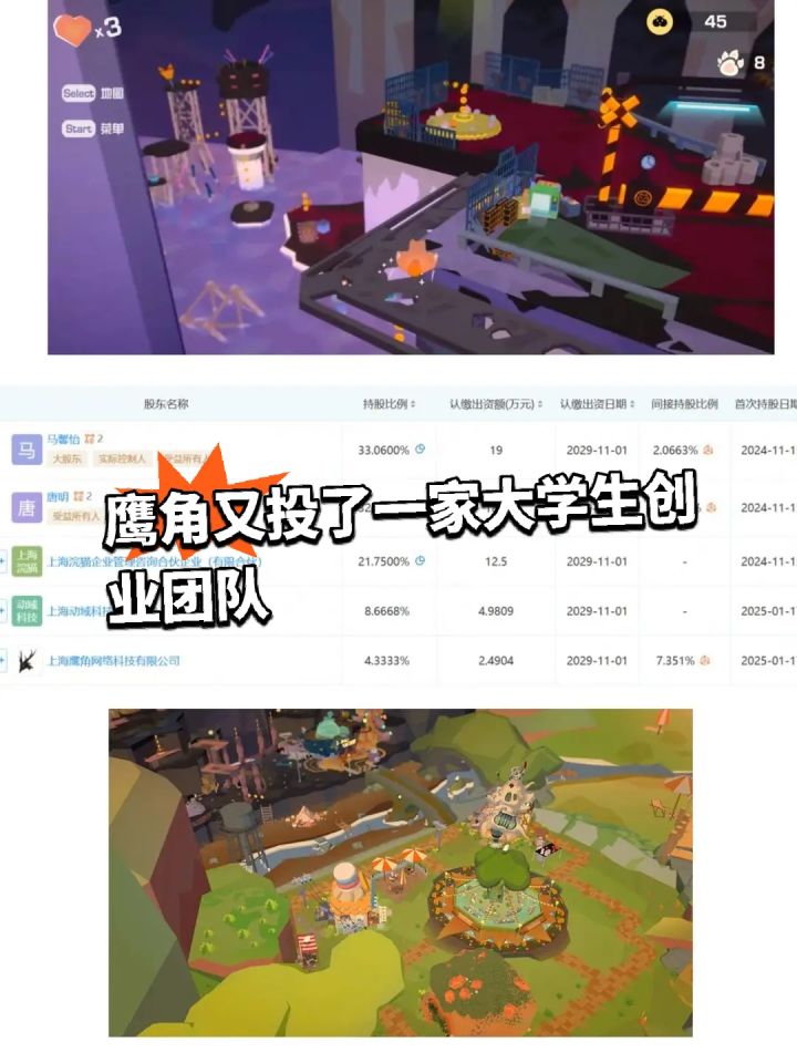 近期,鹰角网络及其控股子公司上海动域科技投资了一家叫做上海浣犬科技的游戏公司,合计占股约13%。