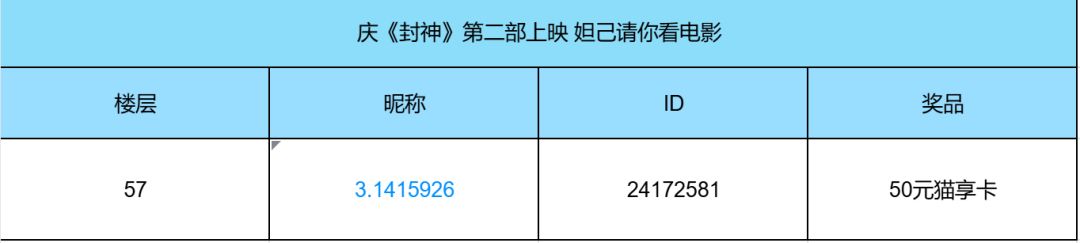 将在活动结束后抽取1位将军大人,送上50元猫享卡(可用于猫眼app购买电影票) 奖励。