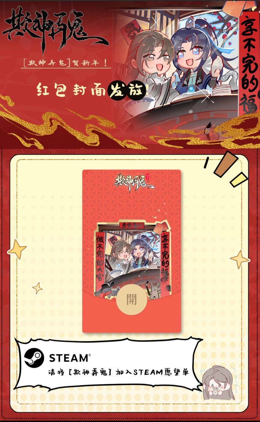 乙巳将至,岁月新更!给大人们准备了《欺神弄鬼》新春限定红包封面,祝福大家在新的一年平安、快乐、健康!