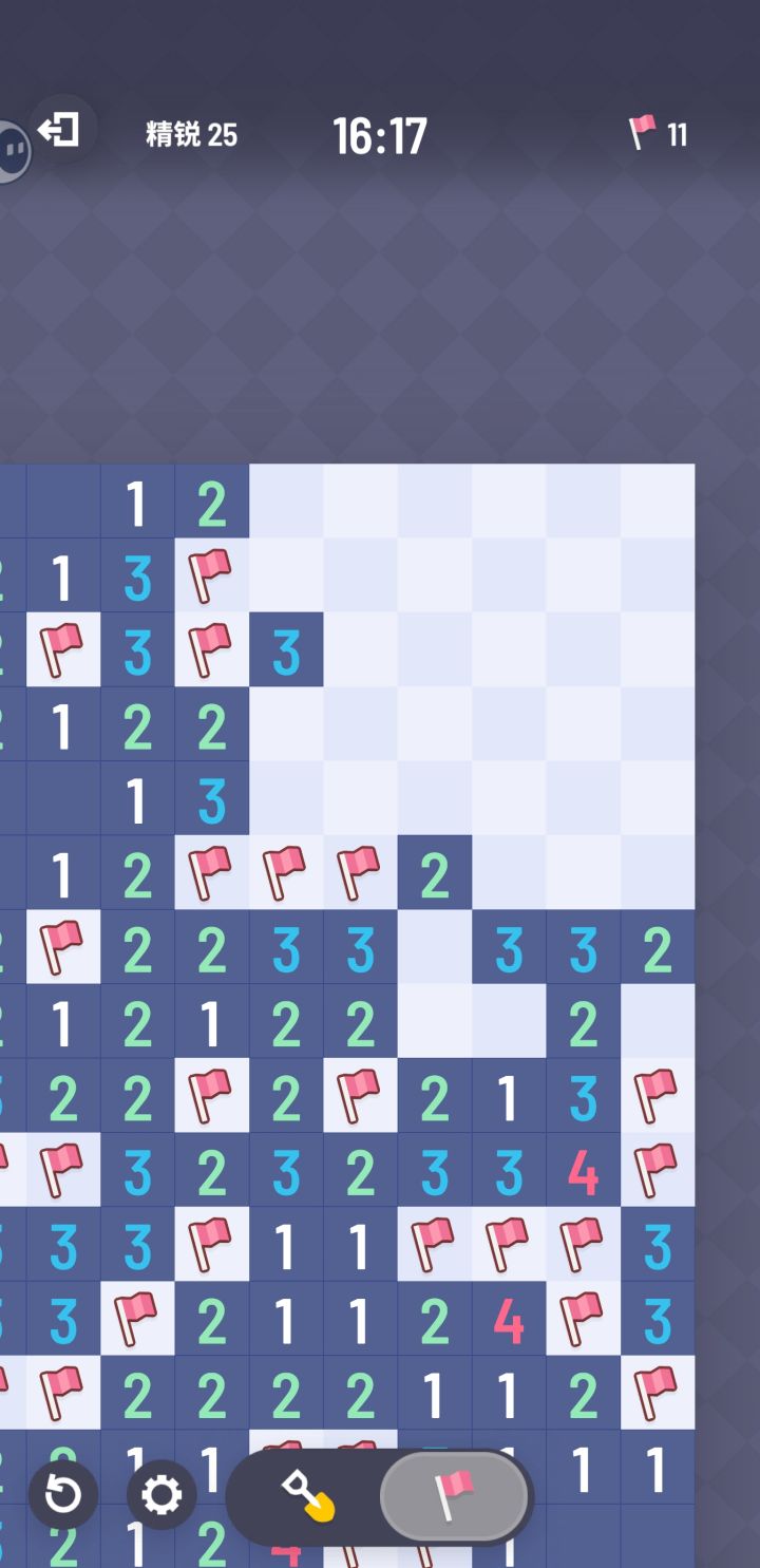 这个要怎么快速判断需要挖开里面那个2上面的三格呀(右边下面有雷二选一)我是从2下面两格的二选一分别假设带入,感觉好麻烦😂