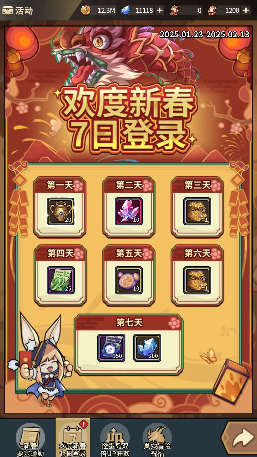 活动时间:1月23日-2月13日每日登录游戏即可领取奖励