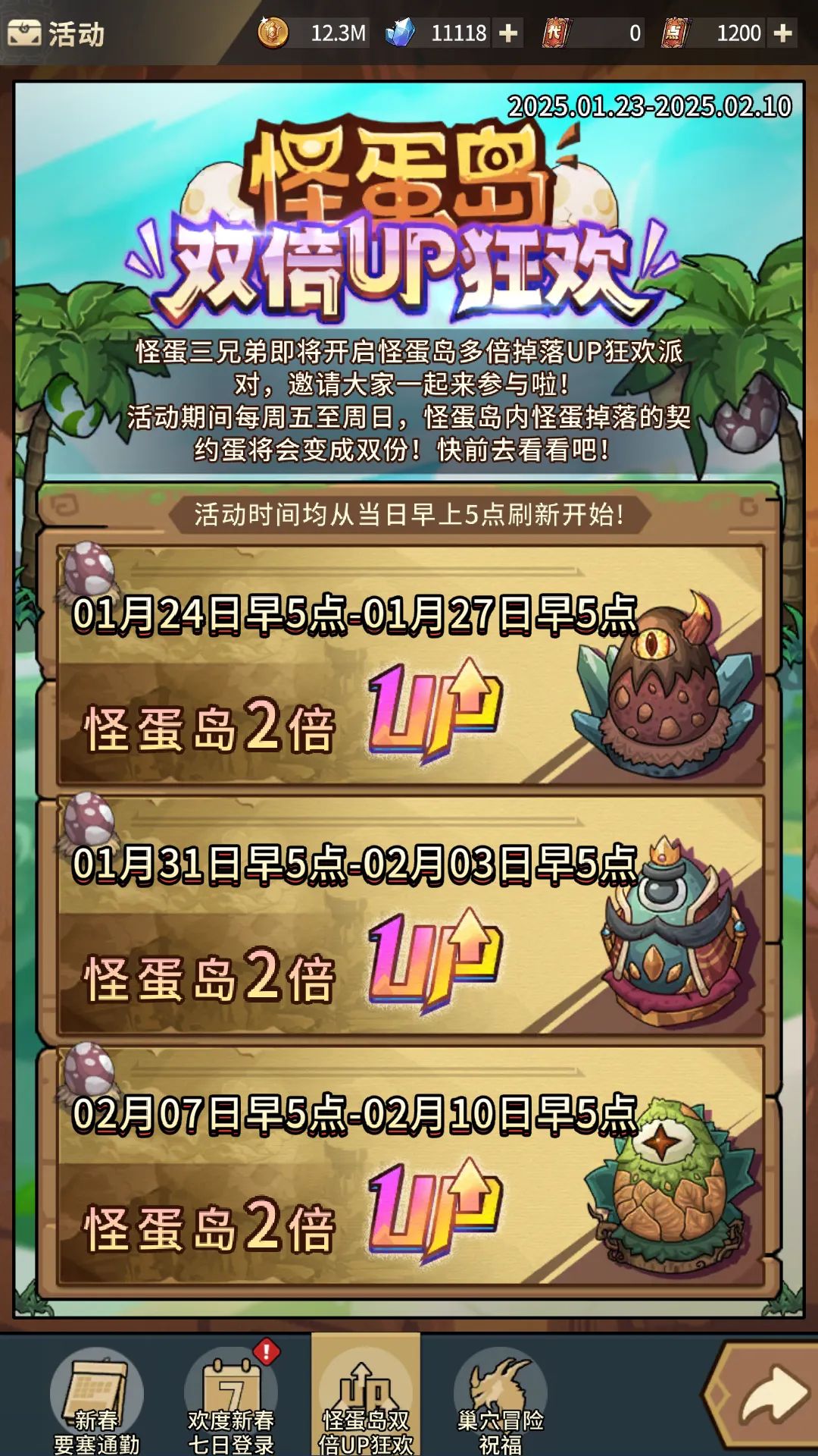 在活动期间内的周五、周六、周日3天,怪蛋岛开启契约兽蛋双倍掉落
