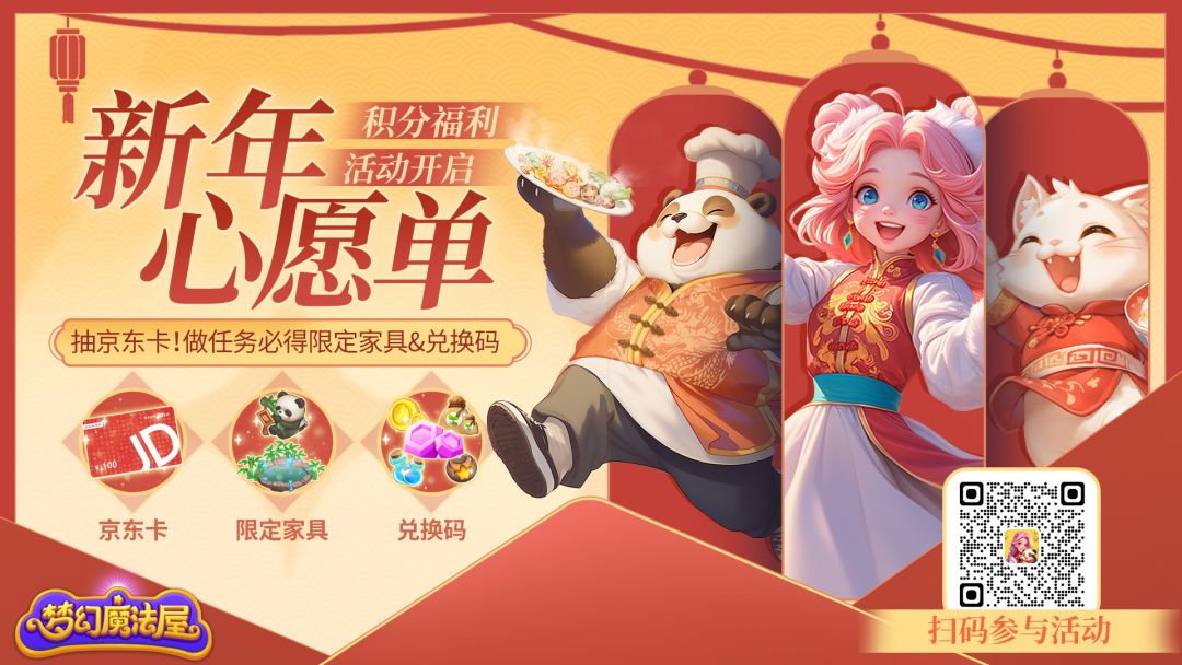 春节福利活动「新年心愿单」开启!内含兑换码、京东卡抽奖~