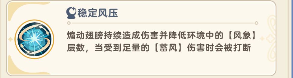 当第4块板块点亮完以后会在第一个板块开始按照点亮的顺序爆炸(伤害很小别怕),当你被炸到以后小图标(图二)就会充能25%,吃到4次爆炸就刚好100%点亮小图标:蓄风(图三),这时候就能释放技能。