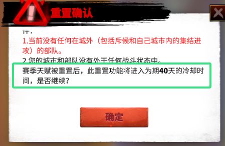 - 重置天赋功能冷却时间的功能长达40天,因此每个赛季基本只能重置一次,还请注意。