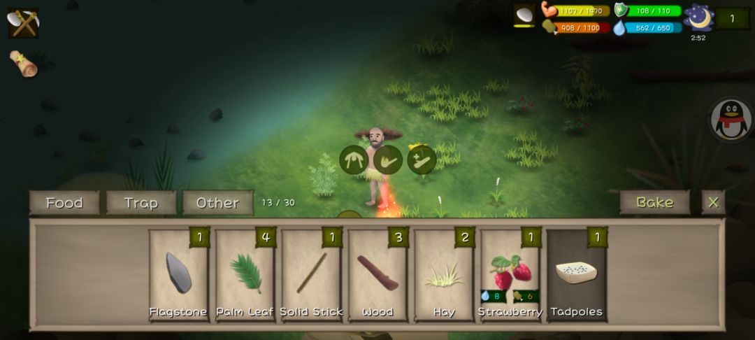 拿着刚才装了一小部分蝌蚪的碗,继续装蝌蚪,装满之后,需要对蝌蚪进行烹饪,这里需要生篝火,并选择背包里的碗,进行烹饪