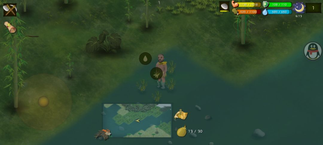 救完金丝雀往下走,走到第一处蝌蚪点位,触发任务,并用沿途采集的物资在附近生火,做一个树皮碗并收集第一个点位的蝌蚪
