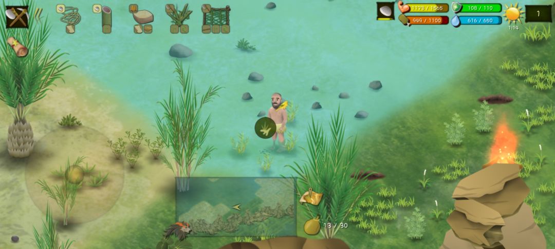首先,在出生点附近找到一个锋利石,搭配送的石板做一把石刀。
