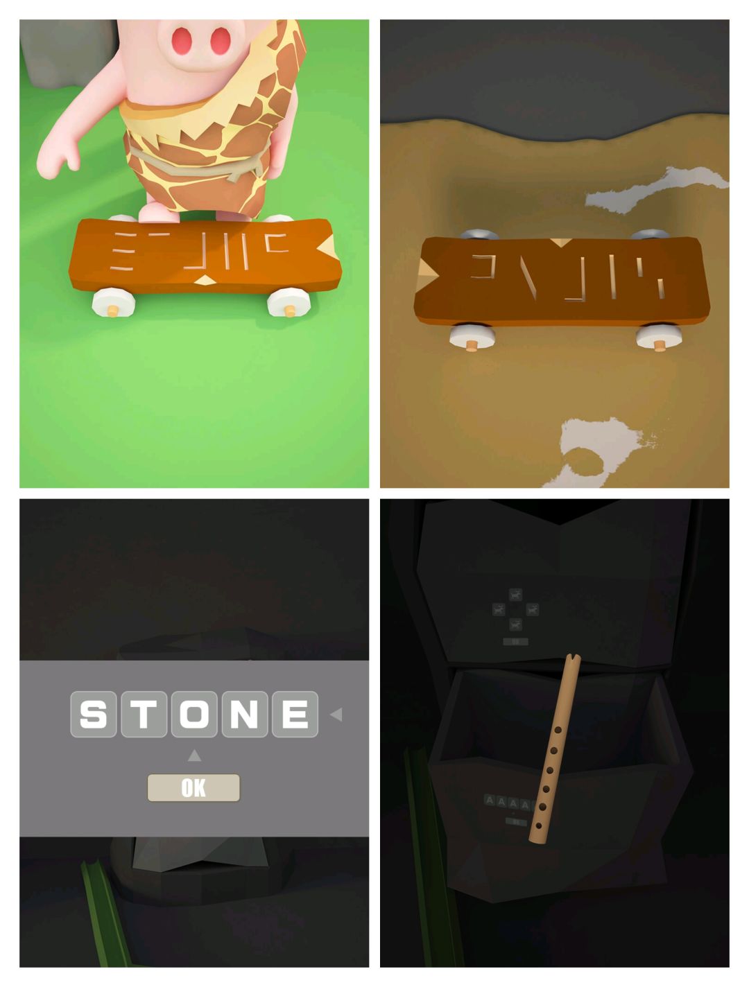 11.将两个滑板的图案结合(注意箭头的位置 箭头要重合再拼到一起)得密码STONE 打开⑤下层抽屉 得笛子
