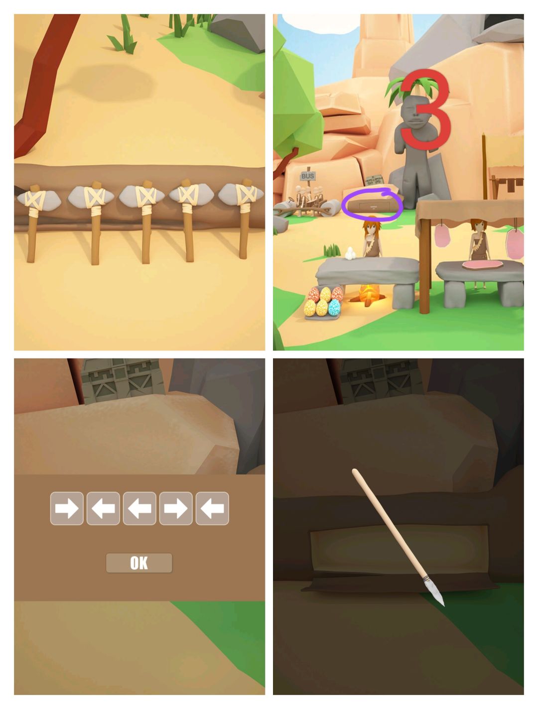 1.根据①石锤提示 打开③箱子(画圈位置) 得石叉