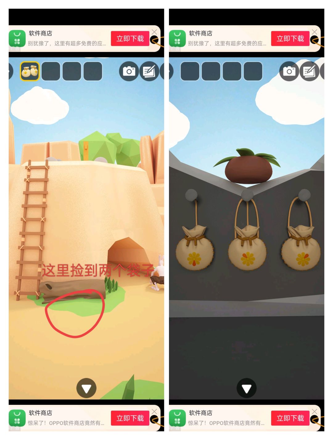 根据袋子上花瓣指示(注意绳子的数量) 打开②石头 得龟壳