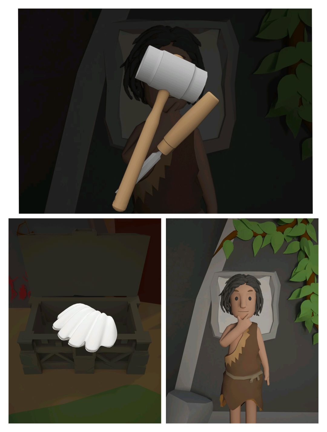 6.根据脚印提示和石头上的画 打开①树桩 得扫把