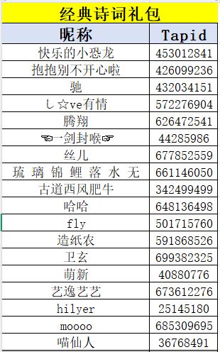 感谢各位主公的耐心等待,经典诗词礼包获奖名单如下!!